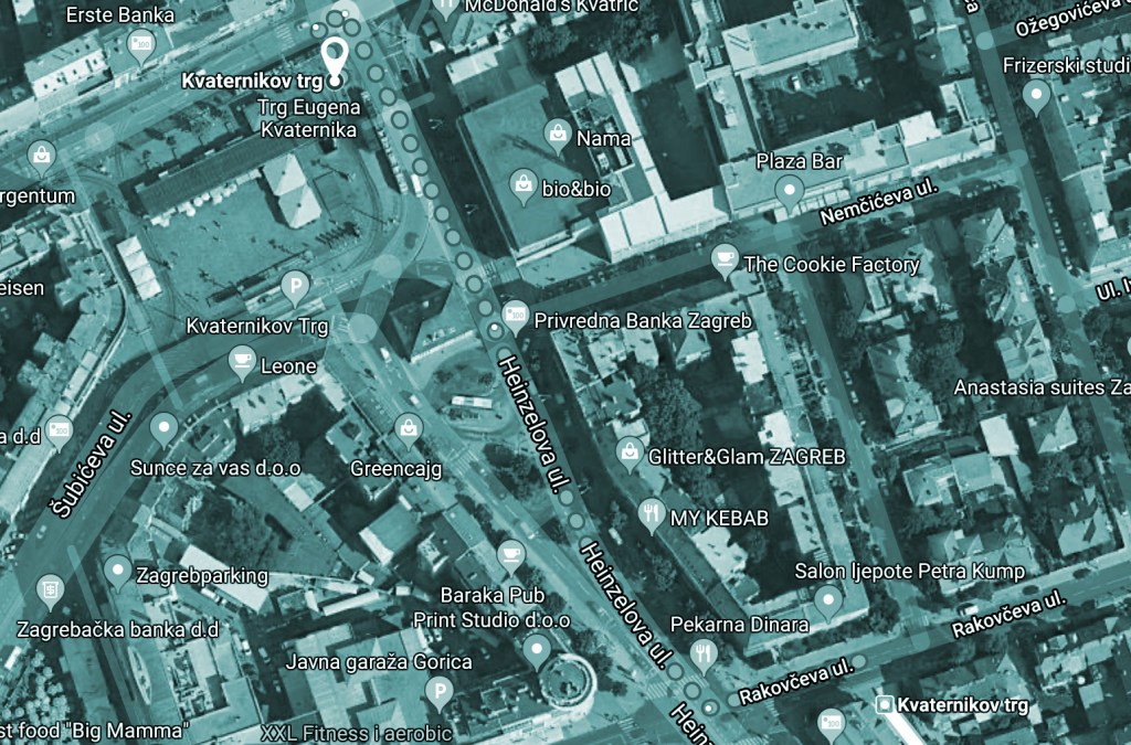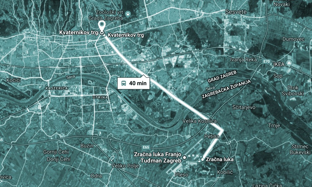 From Kvaternikov Trg bus station to Kvaternikov Trg tram station: